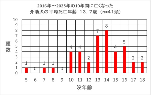 5.介助犬の平均死亡年齢:13.2歳(日本介助犬使用者の会調べ、2026/01/05報告)