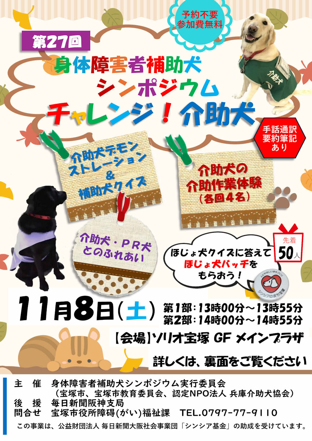 さて、今年の「身体障害者補助犬シンポジウム」は、11月8日(土)13時~15時に開催します。